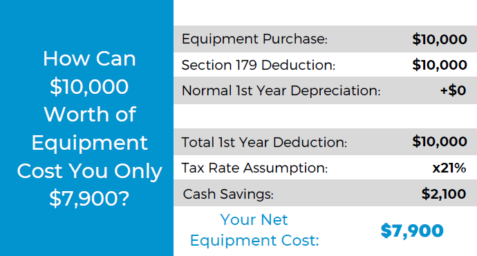 Here’s a chart on what a $10,000 purchase would look like after utilizing Section 179: